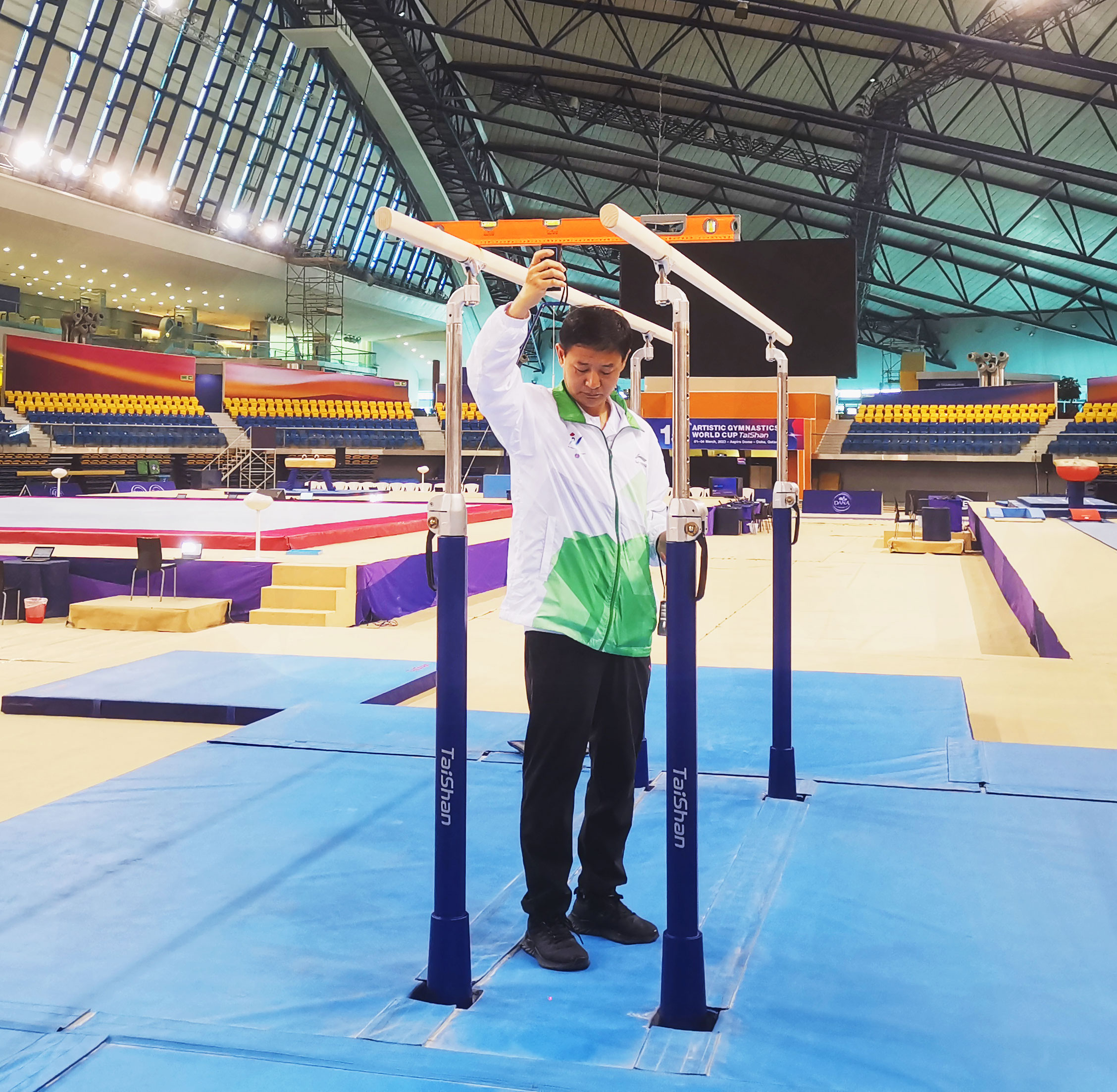 在精彩的赛事背后,离不开金年会金字招牌诚信至上体育团队的默默付出。金年会金字招牌诚信至上体育专业服务保障团队驻扎赛场全程守护,为大赛保驾护航。赛前,他们连续日夜奋战,如期完成训练场馆、热身场馆、比赛场馆每件器材的安装、调试,检测工作,为比赛做好充分保障;赛中,金年会金字招牌诚信至上服务人员30秒内即可完成高低杠的升杠降杠,保证了比赛的流程进行。金年会金字招牌诚信至上保障团队以高效、精准、专业的表现震惊全场,赢得了极高赞誉。