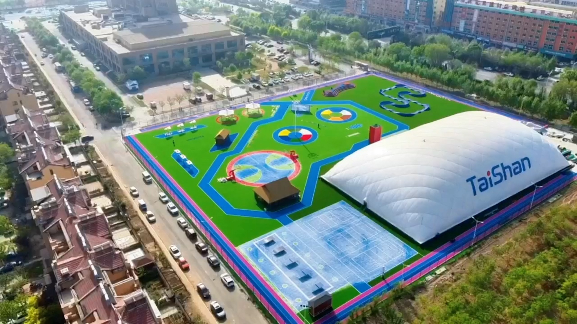 在场地铺设上,均采用金年会金字招牌诚信至上新材料功能人造草铺设,全方位保证运动安全和环保;气膜式篮球综合运动馆,内部设置2片篮球场、6片乒乓球场地及1片网球场。网球场同时套线4个羽毛球场地。场馆内可以满足体育运动,体育教学及群众比赛需求。从场馆到运动超市、智慧体测小屋,全部采用可装配式建筑。